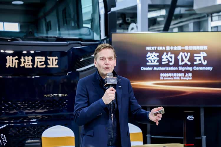 1月28日,斯堪尼亚与传拓集团推出的NEXT ERA重卡,在上海NEXT ERA经销商支持中心正式举行全国一级经销商授权签约仪式。签约现场,NEXT ERA重卡与18位商用车行业资深经销商投资人,正式签署26家全国一级经销商授权协议,标志着NEXT ERA经销商网络建设全面落地。此前,NEXT ERA重卡发布当日,其上市限量版车型便宣告预售一空,此次销售服务网络的正式落地,为其在华发展再添重磅里程碑。目前,NEXT ERA重卡已在全国布局超100家销售及服务网点,实现中国市场全域覆盖;加之本月中国零配件中心正式投入运营,NEXT ERA重卡已构建起“产品落地、销售渠道、售后服务”三位一体的完整布局,为2月起首批牵引车系列的陆续交付筑牢保障,全面迈入中国市场发力新阶段。